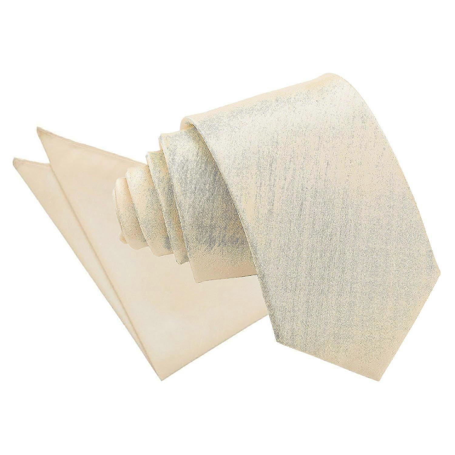 Beige Plain Shantung Slim Tie and Pocket Square Set