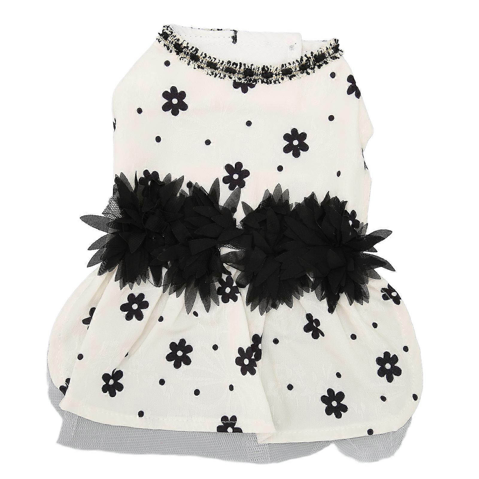Beige M Pet Dog Dress Soft Comfortable Breathable Black Floral Pet Princess Dress for Small Pets