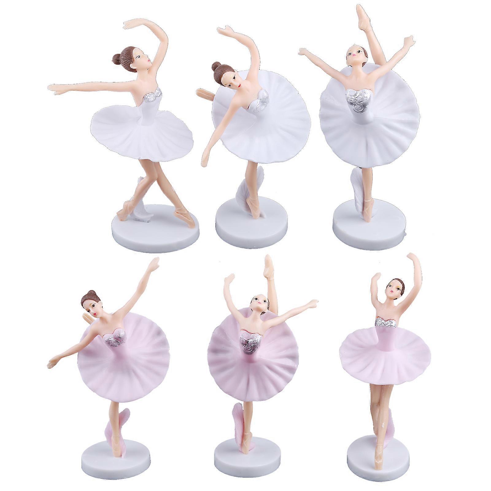 Set of 6 Ballet Girl Cake Toppers with Base Miniature Figurine Toy Figurine Playset Cake Decoration Ballerina Cake Decor