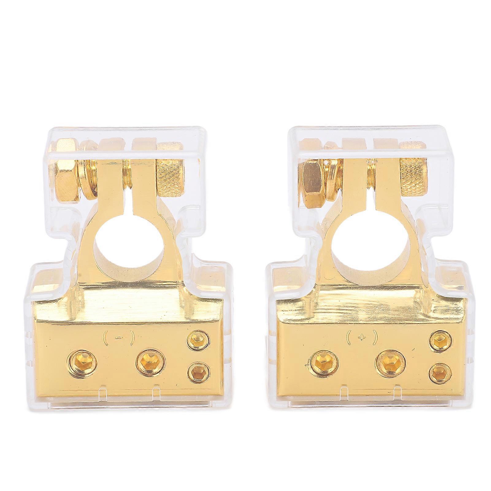 Pair Car Battery Terminal Connector Top Post Negative Positive Zinc Alloy Oxidation ResistantGold