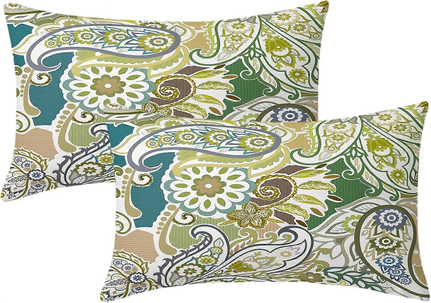 Paisley Pattern Lumbar Pillow Covers 12X20 Inch Green Brown Cream Rectangle Couch Pillow Cases Multicolor Flower Decorative Throw Pillows Set of 2 Hom
