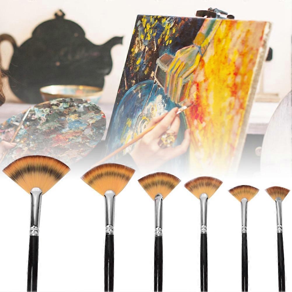Painting Brush Nylon Hair Birch Handle Fan shape Gouache Watercolor Drawing Pen Art Supplies(6Pcs )