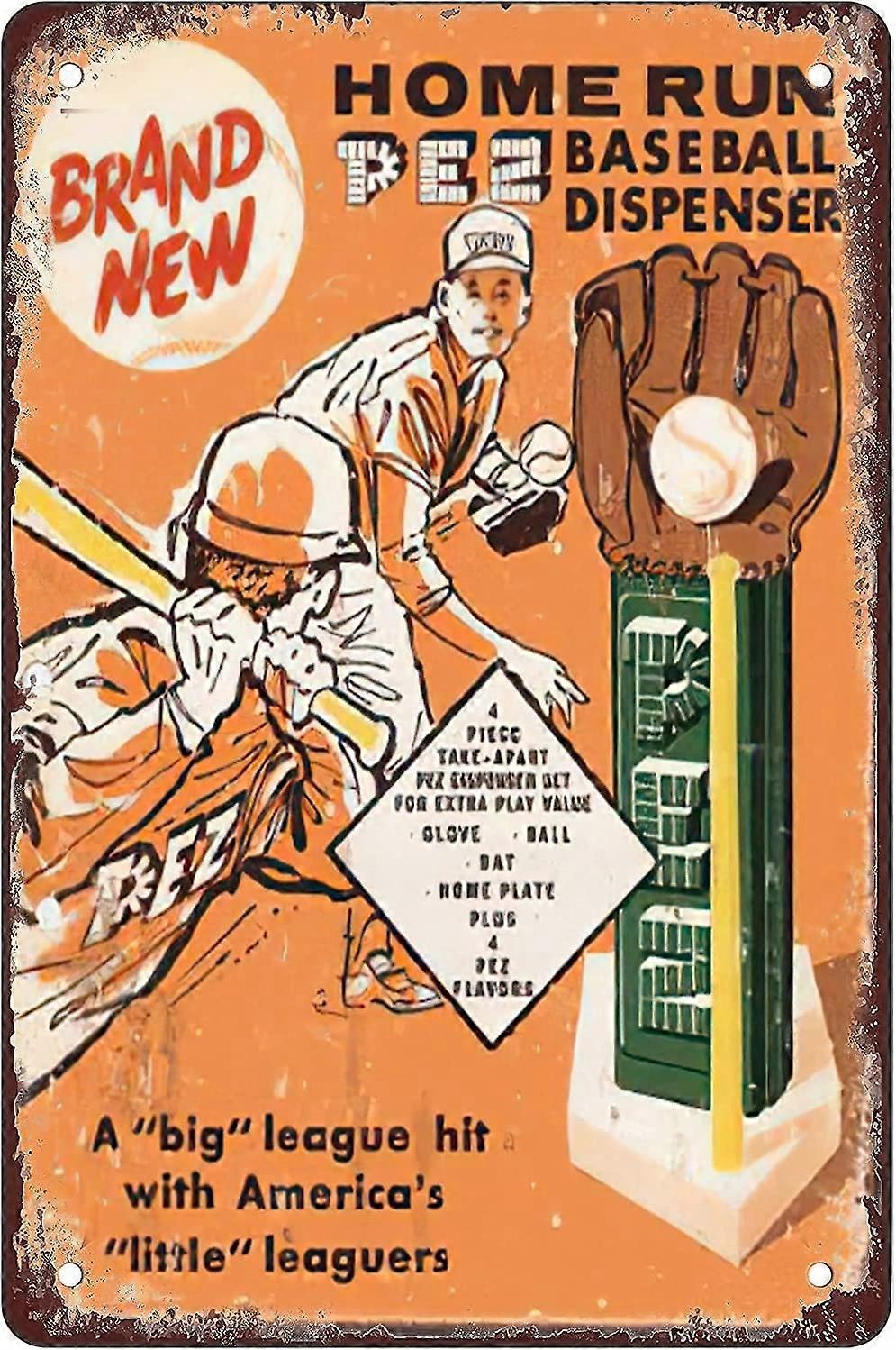 Pez Baseball Dispenser Tin Sign Metal Tin Sign Wall Decor Fun Decoration for Home Kitchen Bar Room Garage Vintage Retro Poster Plaque 12x8 Inch