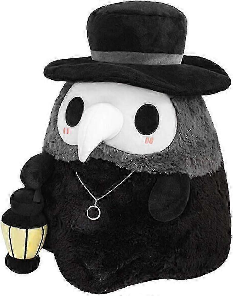 Plague Doctor Plush Toy, 20cm Spooky Cute Plushie Pillow Doll, Soft Fluffy Halloween Glow In The Dark Dolls, Present for Kids (Black)