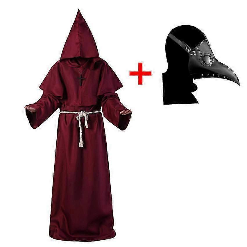 Plague Doctor Mask Black Death Witch Carnival Halloween Priest Robe Wizard Cosplay Costumes Performance Cape Punks Clothingburgundy And Mask