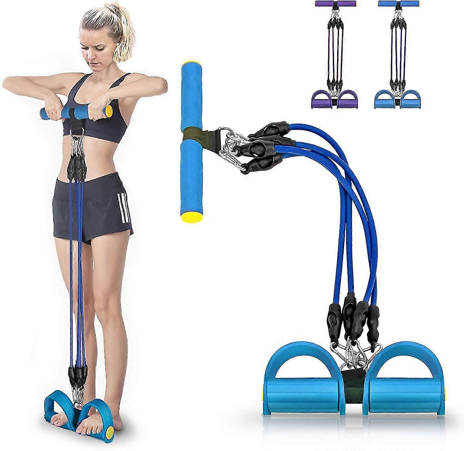Pedal Resistance Band, 4-tube Elastic Drawcord With Natural Latex Foot Pedals, Sit-up Drawstring Gym Equipment For Arms, Back And Legs Strength Workou
