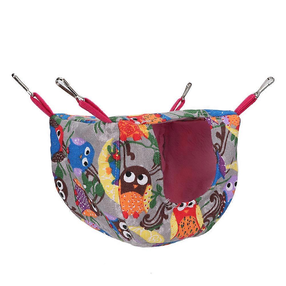 Pet Parrot Square Nest Hammock Hanging House Hamster Squirrel Cage Cave Toy (Owl & Moon)