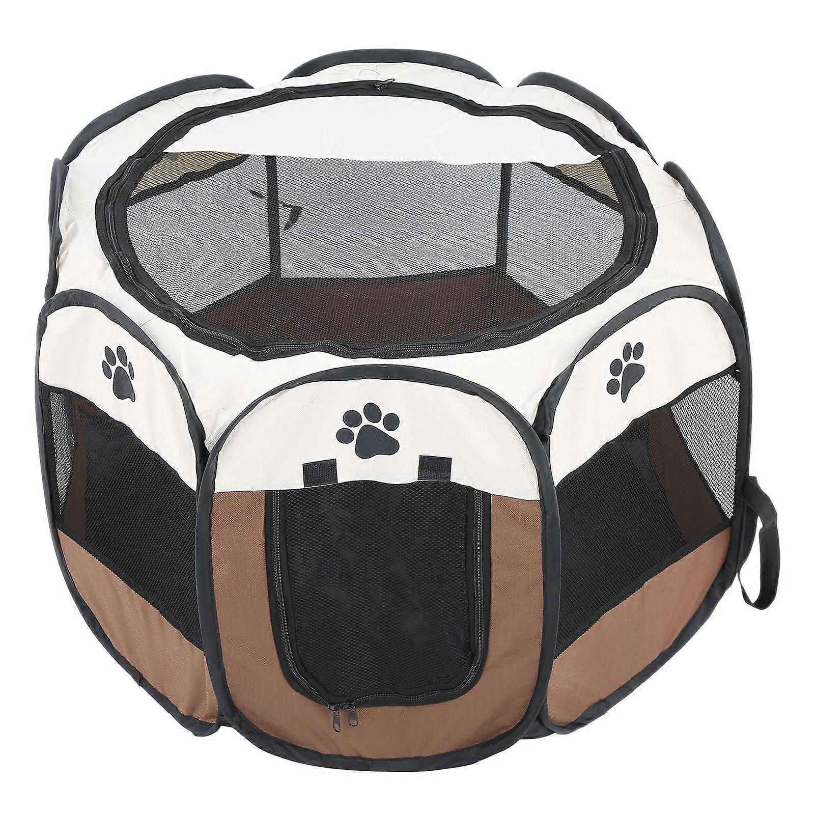 Pet Cat Dog Portable Foldable Cage Exercise & Play Tent Mesh Cover Indoor/Outdoor Use Coffee