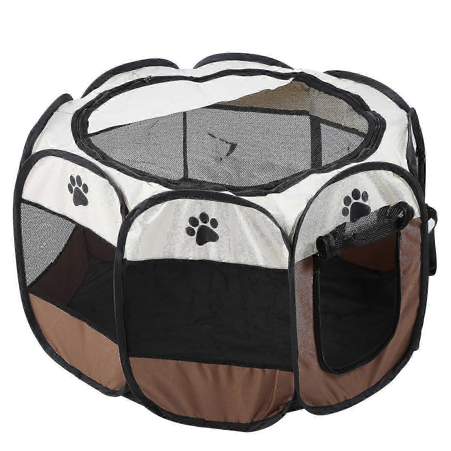 Pet Cat Dog Portable Foldable Cage Exercise & Play Tent Mesh Cover Indoor/Outdoor Use Coffee