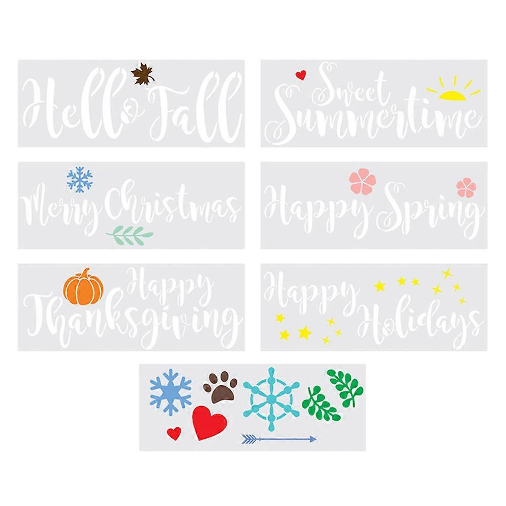 7Pcs Creative English Words Painting Stencils for Imaginative Fun with Rectangular Design in Assorted Color Made of Pet