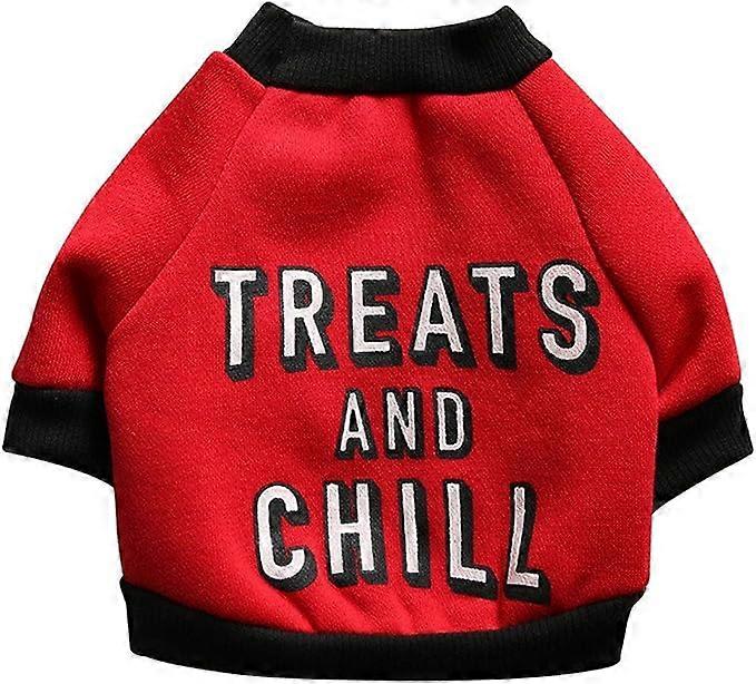 Pet Clothes, Puppy Treats and Chill Cute T-Shirt Dog Cold Weather Coat Warm Letter Printed Shirt for Small Dog Medium Dog Or Cat