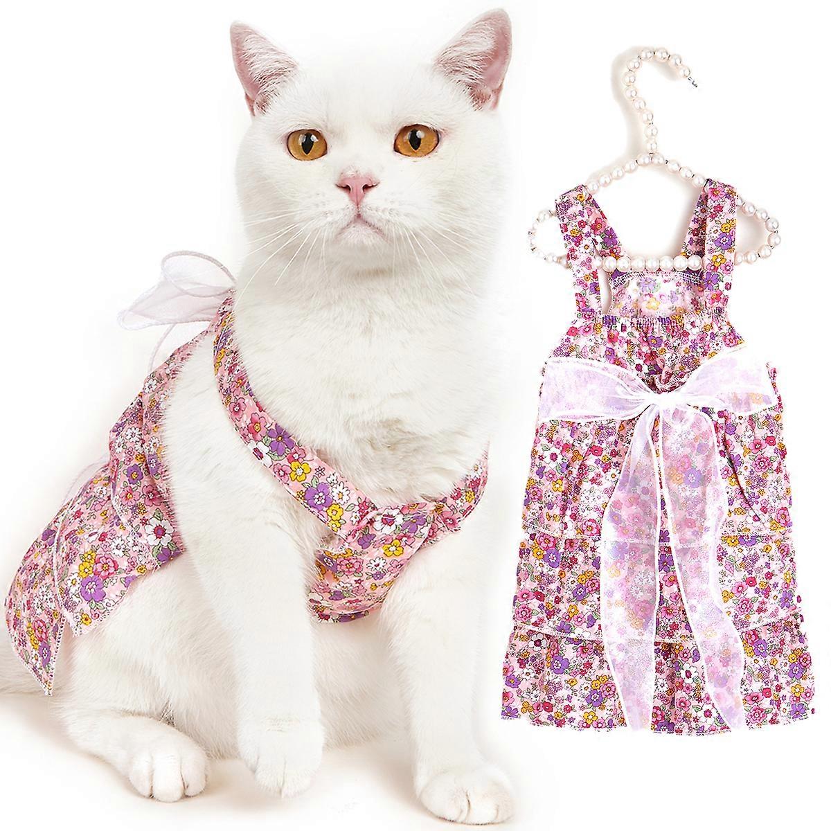 Pet Clothes Floral Princess Dog Dresses Girls Outfit for Pets Puppy Dresses Floral Bow Decor Cute Summer Cute Female Cat Dress