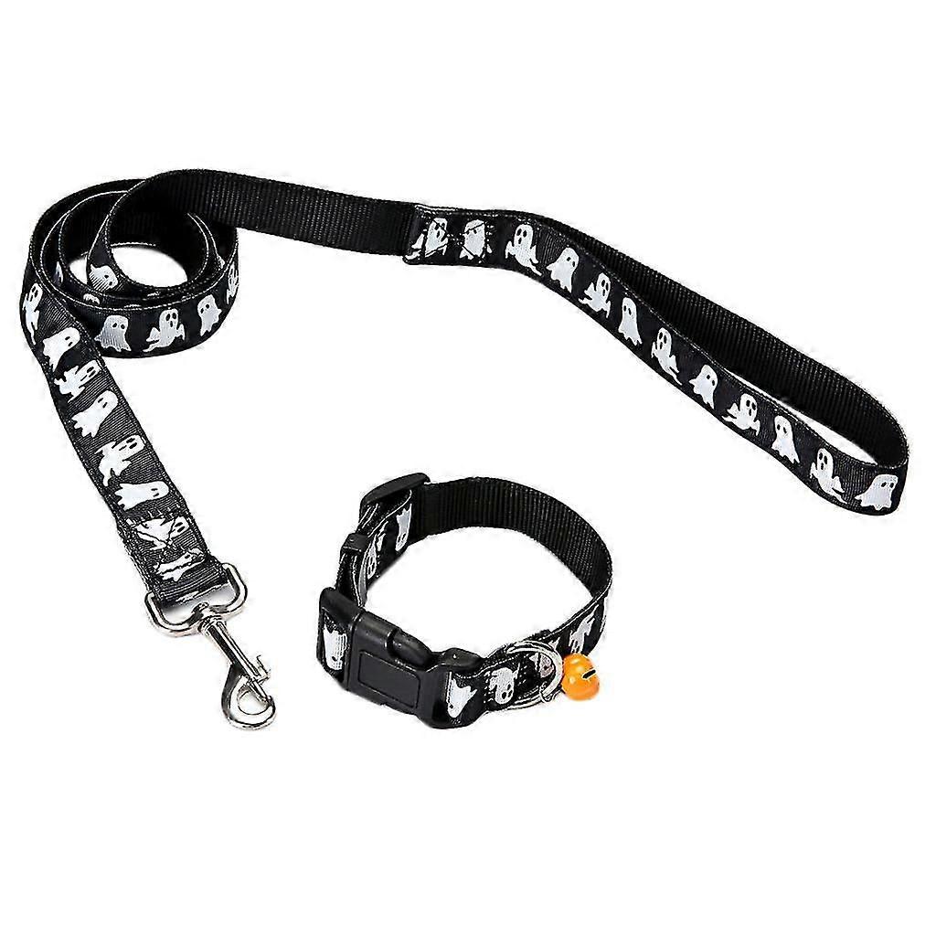 Pet Dog Collar Leash Outdoor Rope For Pet Halloween Costume Black Ghost