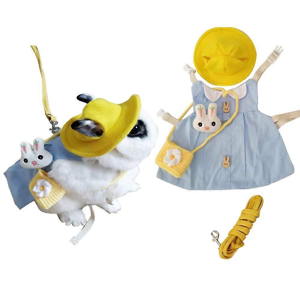 Pet Rabbit Dress Set with Sun Hat Mini Bag Harness Accessory