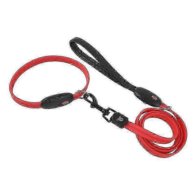 Pet electroluminescent leash collar USB charging LED dog walking collar leash red