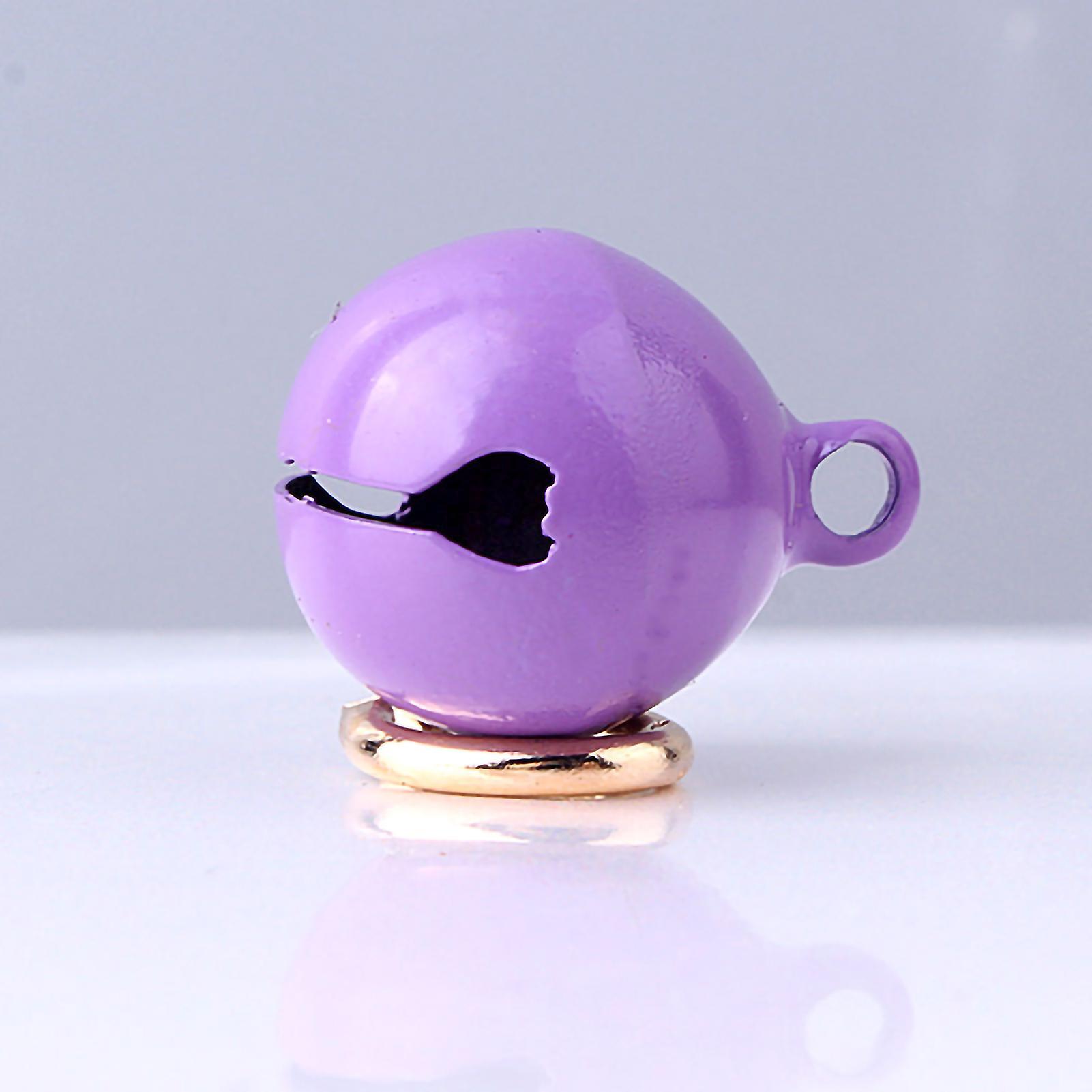 Pet Collar Bell Iron Pet Round One Piece Bell Collar Pendant Accessories with Keyring for Cats and DogsPurple