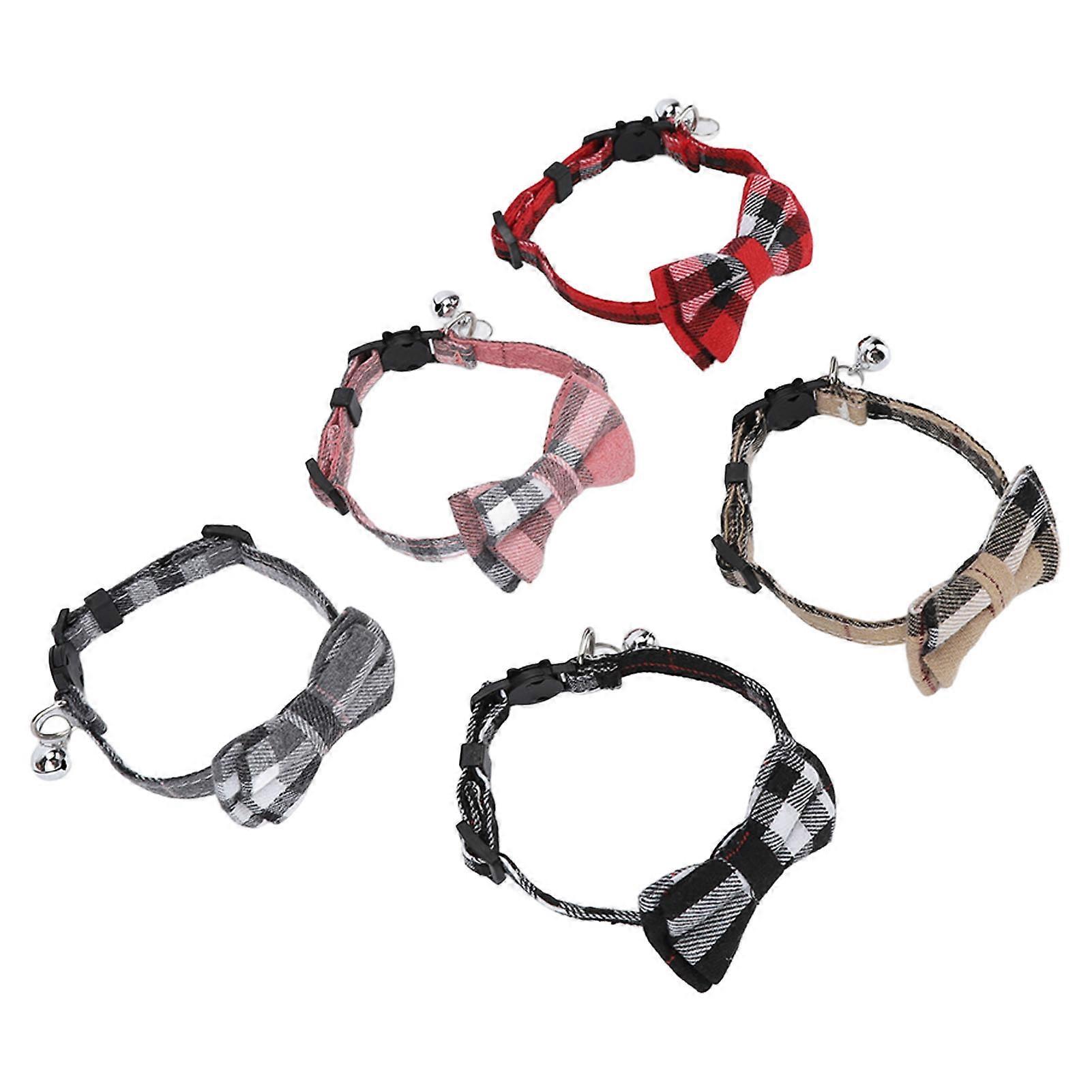 Pet Collar Adjustable Safe Buckle Soft Mix Color Cute Plaid Dog Bow Tie with Bell compatible Cat Puppy Daily Walking 5pcs