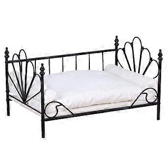 Pet Sofa Bed Iron Frame All-Season Cat Dog Bed with Removable Cushion,Size S