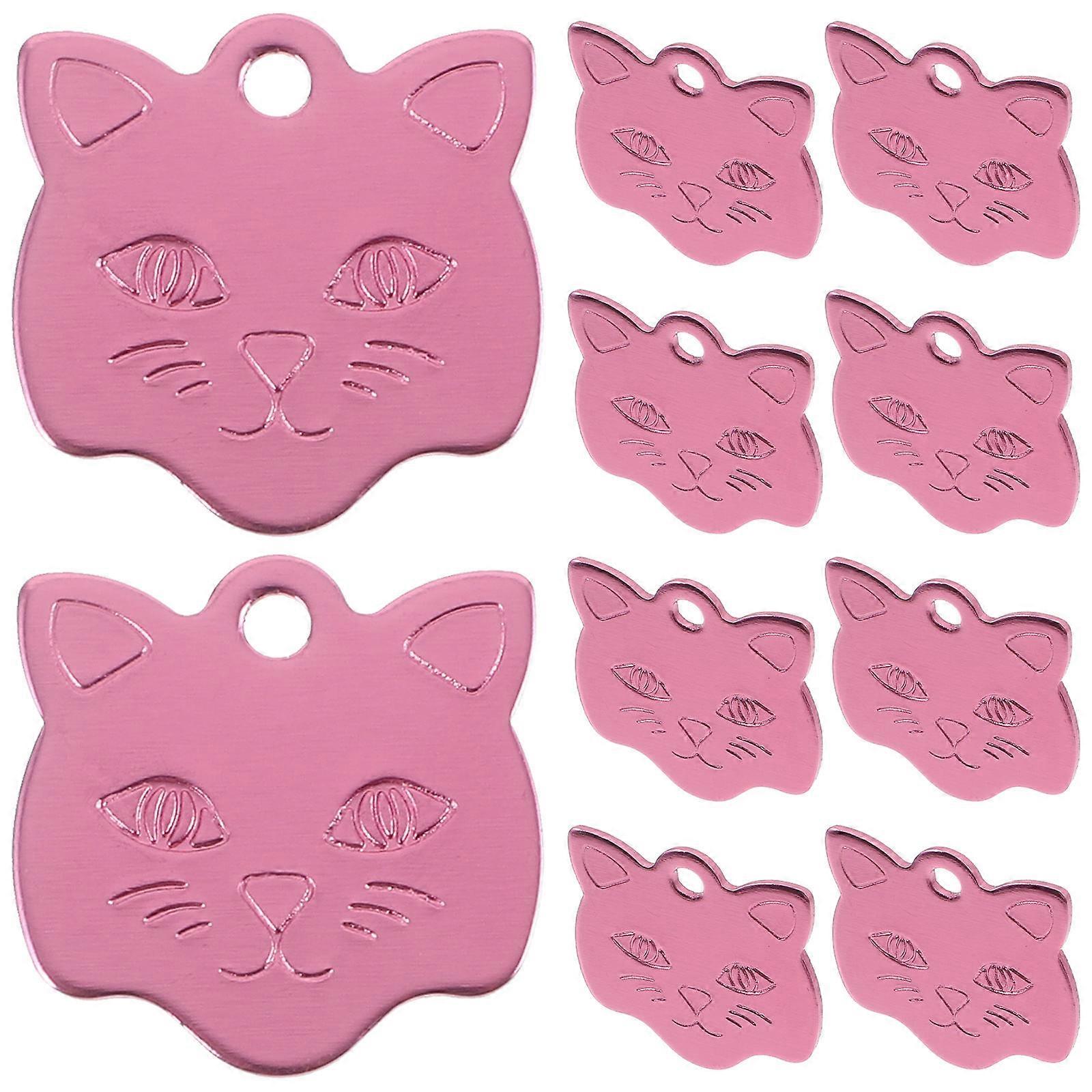 Pet Tag Cat Head Shaped Dog Id Tag for Collar 10Pcs in Pink Color