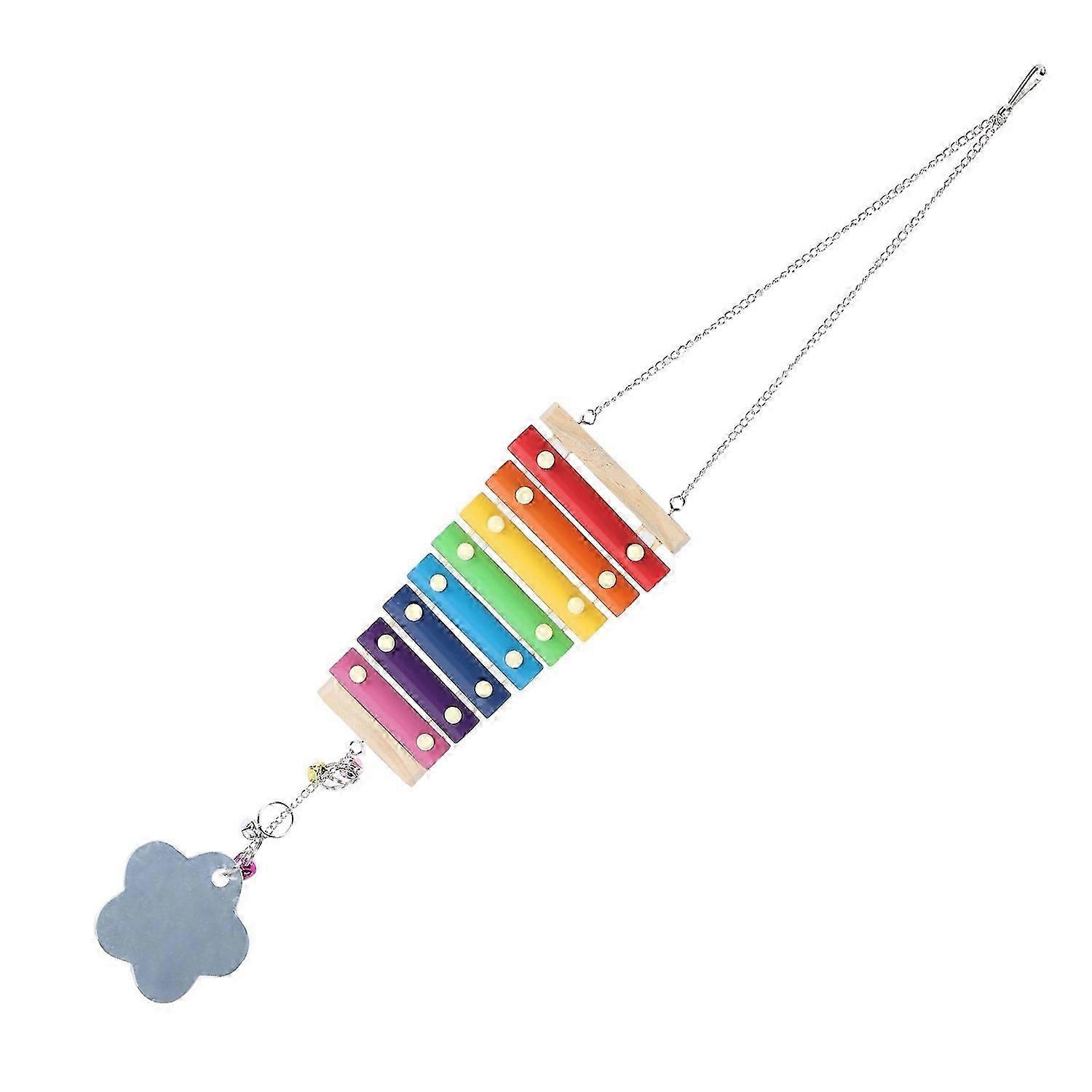 Pet Chicken Xylophone Toy Hens Parrots Hanging Wooden Pecking Xylophone with Mirror