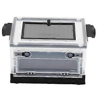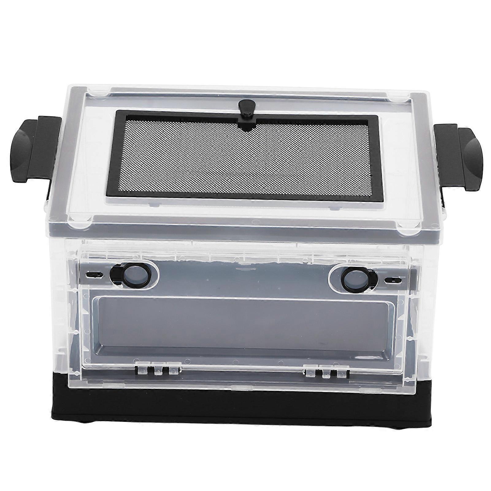 Features: 1.[Convenient Front Door] Pet terrarium with front door design, convenient snap on fastening, easy to open and close, convenient to put food or clean inside. 2.[Breathable] There are many ventilation holes on the side of the small animal terrarium tank, so that the air inside the box can be better circulated. 3.[Top Mesh Design] The top lid of the pet feeding box is designed with mesh, which is convenient for air circulation and also for placing lampshades. 4.[Foldable And With Pulleys] Animal breeding box is designed with pulleys at the bottom for easy movement. Foldable design, easy to carry and storage. 5.[Sturdy And Durable] The habitat tank is made of thickened ABS material with strong weight bearing capacity. Suitable for rutin chickens, hedgehogs, hamsters, etc. Specification: Item Type: Pet Terrarium Material: ABS Size: Approx. 395 x 295 x 240mm / 15.6 x 11.6 x 9.4in PackageList: 1 xTerrariumTray 1 x Cover 2 x Handle 4 xPulleys Note Manual measurement, please allow some errors.