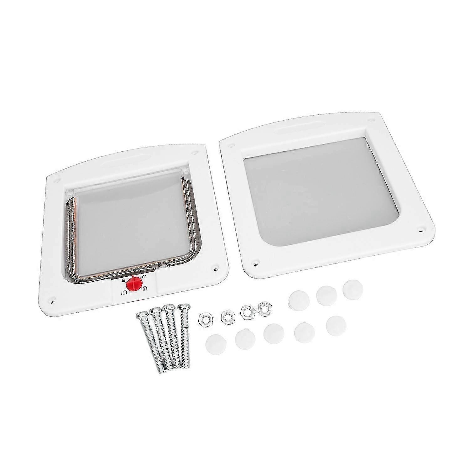 Feature: 1. EASY TO INSTALL: Pet door is easy to install, comes with the tools needed, and is simple to put together to play with your pet. 2. SIMPLE TO USE: Dog and cat door is simple to use. Choose the right pet door control for your individual preference and needs. 3. SCOPE OF APPLICATION: Cat flap door is suitable for installation on interior doors, exterior doors, wall, window, cabinets, glass and more. 4. NON SLIP AND DURABLE: Interior exterior pet door is made of plastic, non slip and durable, not easy to damage, long service life. 5. COMPACT DESIGN: Dog door is compact in design and does not take up extra space, suitable for kittens and puppies that are a few months old. Specification: Item Type: Pet Door Material: Plastic Color: White. Package List: 2 x Pet Door Accessory4 x Screw4 x Nut8 x White Small Accessories