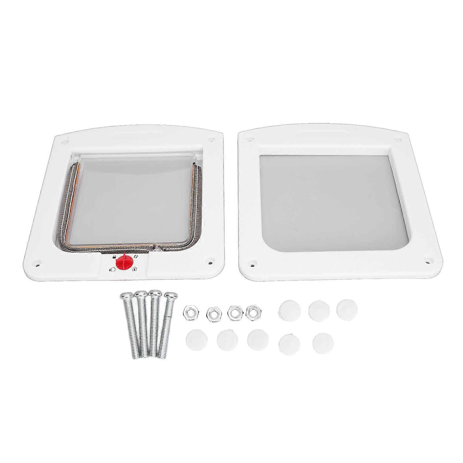 Feature: 1. EASY TO INSTALL: Pet door is easy to install, comes with the tools needed, and is simple to put together to play with your pet. 2. SIMPLE TO USE: Dog and cat door is simple to use. Choose the right pet door control for your individual preference and needs. 3. SCOPE OF APPLICATION: Cat flap door is suitable for installation on interior doors, exterior doors, wall, window, cabinets, glass and more. 4. NON SLIP AND DURABLE: Interior exterior pet door is made of plastic, non slip and durable, not easy to damage, long service life. 5. COMPACT DESIGN: Dog door is compact in design and does not take up extra space, suitable for kittens and puppies that are a few months old. Specification: Item Type: Pet Door Material: Plastic Color: White. Package List: 2 x Pet Door Accessory4 x Screw4 x Nut8 x White Small Accessories