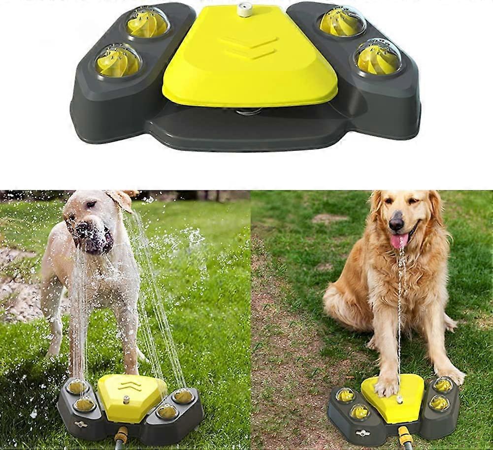 - 3-in-1 multifunctional outdoor dog accessory for foot watering, outdoor bath and sprinkler play. The design adds interest and happiness to dogs during outdoor activities. - Compatibility and installation: Complies with international standards. Suitable for standard plastic faucets. Connects to 4/6 point male-thread faucets. Easy to adapt to soft water pipes. No complicated installation; quick to set up. - Durable construction: Made of sturdy PP material; resistant to deformation and fading; durable against dog play; long lasting. - Easy to use and engaging: Simple to operate; attracts dogs strongly to play. Using this product can help improve dogs' intelligence and physical strength. - Use scenarios: After muddy walks for foot washing. Outdoor bath to rinse. Sprinkler play on hot days to cool down.