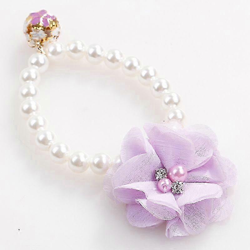 Pet Pearl Collar(Purple Color)-22-40cm Dog Pet Pearl Flower Collar Elastic Collar for Puppy Collar Jewelry Accessory