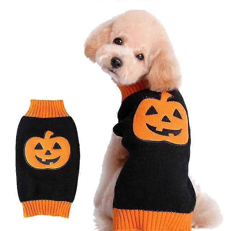 Pet Halloween Holiday Pumpkin Knitted Sweater Pets Dogs Autumn Winter Warm(1pcs-black)