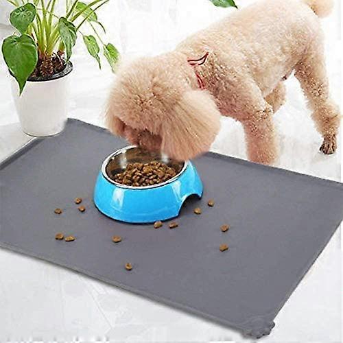 Pet Feeding Mat Silicone Non-Slip Pet Food Mat Dog Bowl Placemat, Cute Feet Design, Perfect for Protecting Floors from Spills (Gray) - -