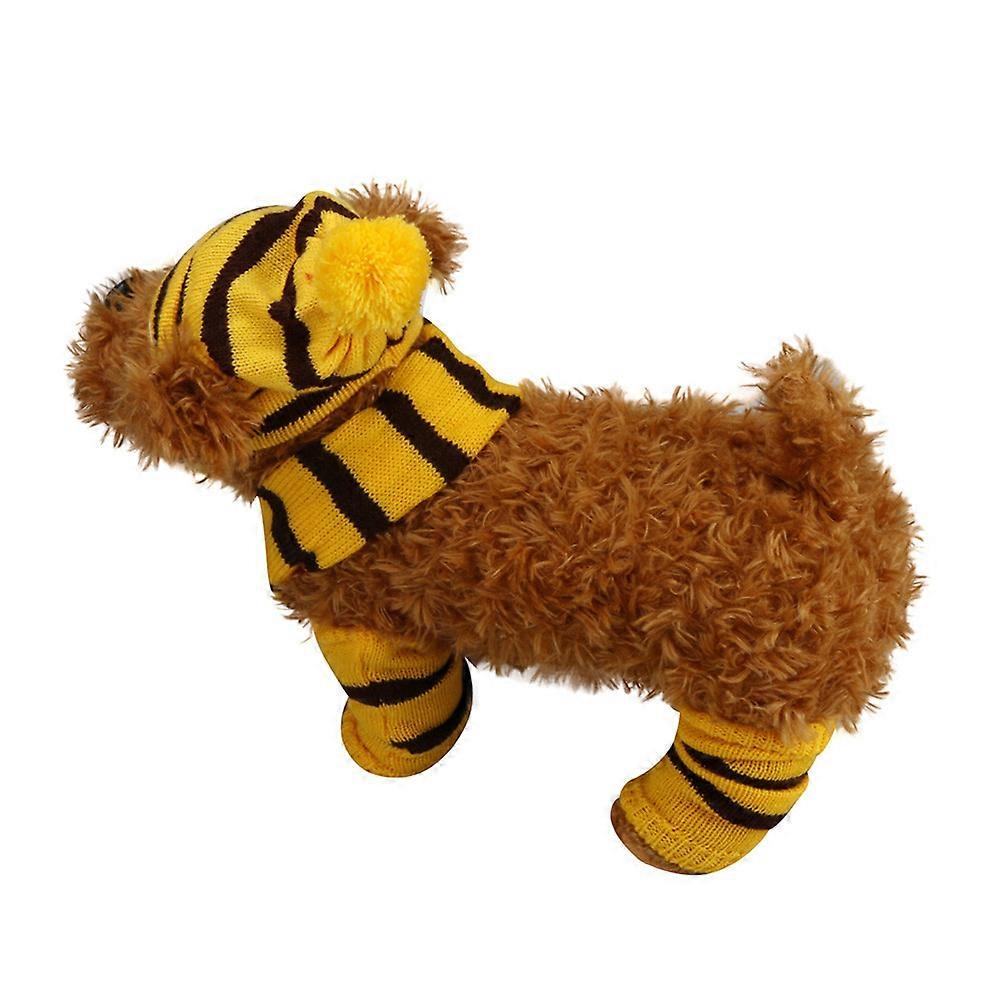 Pet Festival Knitted Winter Scarf Hat Set In Yellow And Brown For Dogs XS Size Warm 1 Set