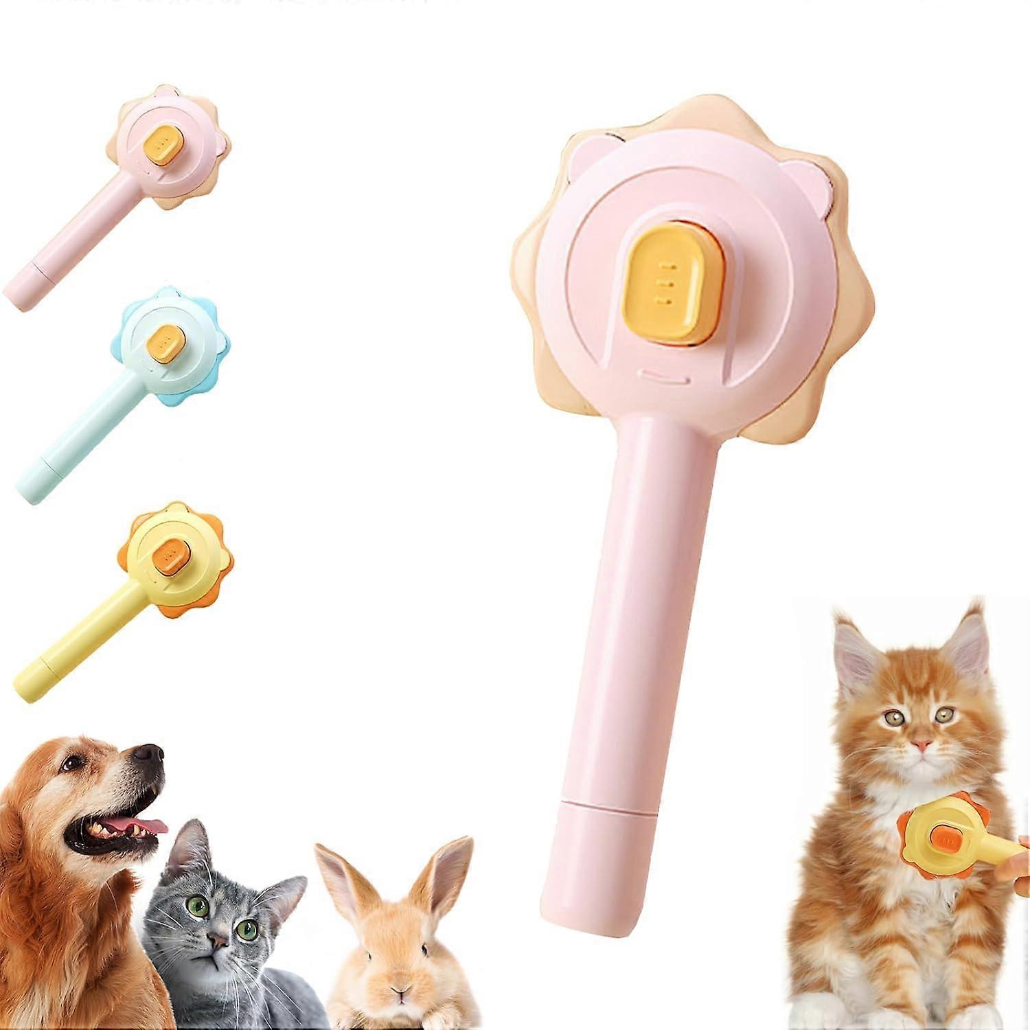 Pet Hair Cleaner Brush, Cat Grooming Brush with Release Button, Magic Pet Comb, Cat Brush, Self Cleaning Slicker Comb (Pink)