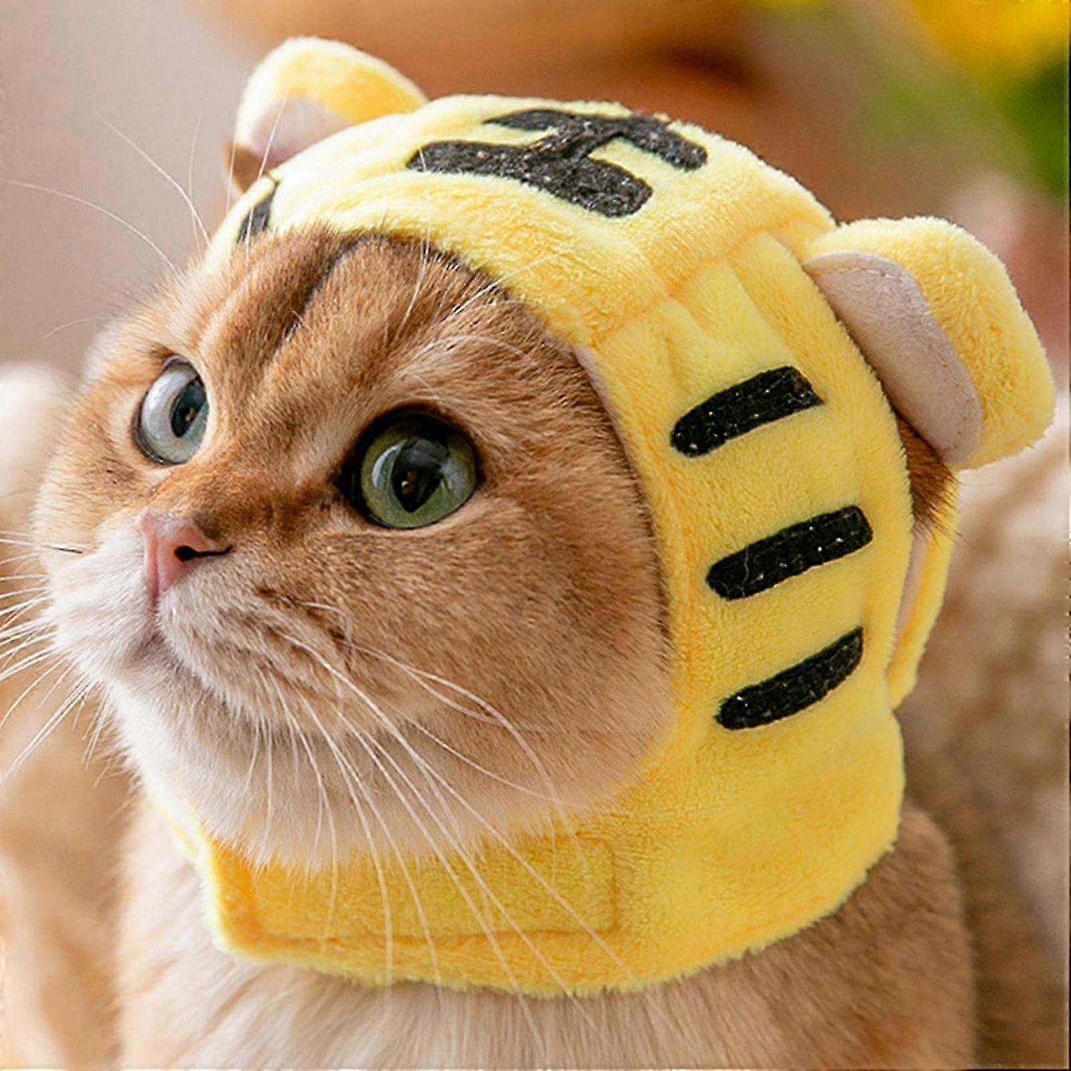 Pet Headgear Cute Cartoon Warm Comfortable Pet Hat for Cat Dog Party Costume Accessory Yellow Tiger
