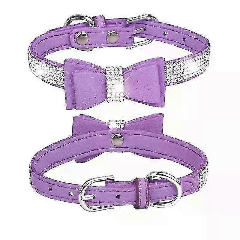 Pet Rhinestones Bow Knot Collar Dog Cat Bling Soft Cute Tie Collar PU Leather Pet Collar Pet Dog Supplies