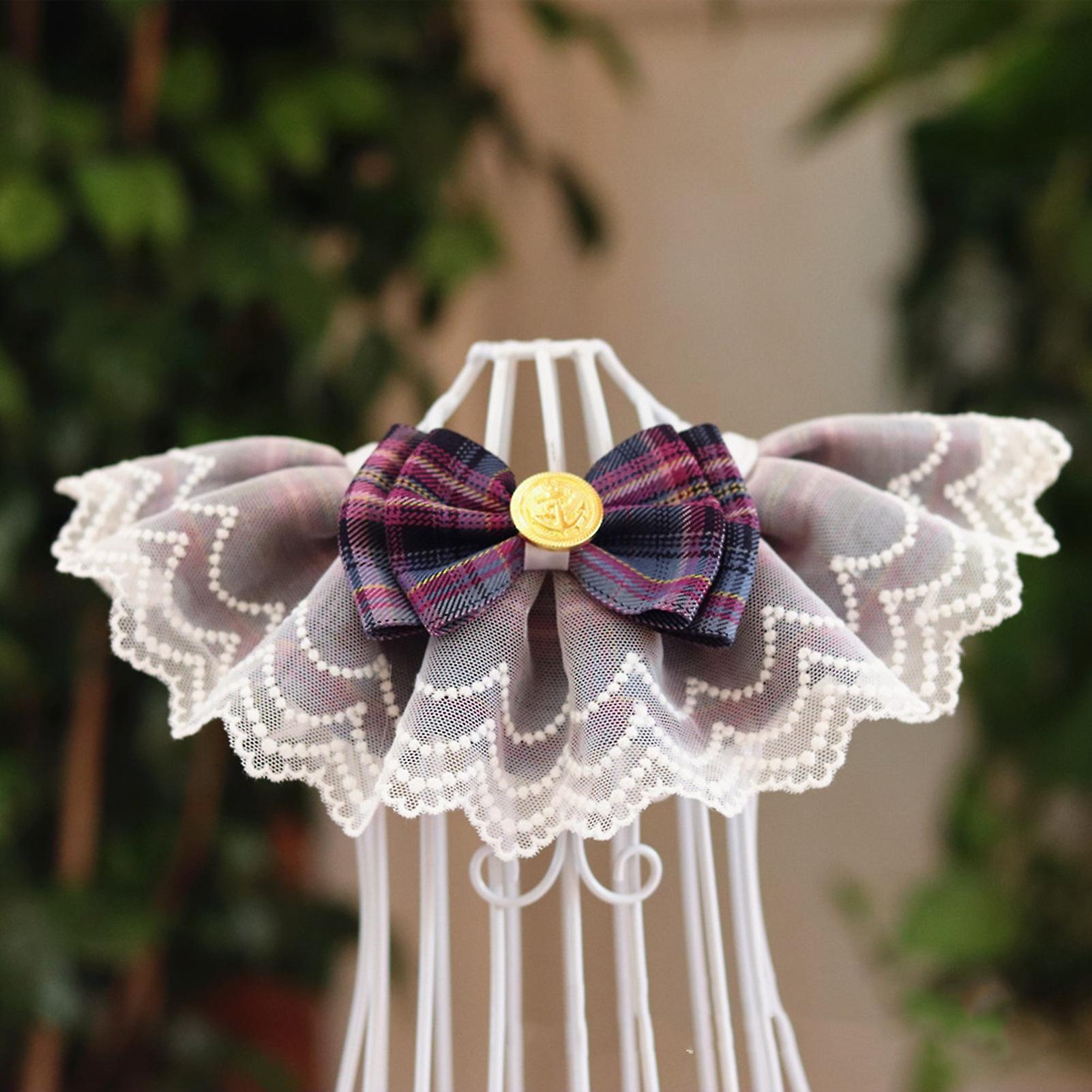 Pet Lace Bibs Collar Fashionable Cute JK Plaid Pet Neckerchief for Pet Scarf Accessories Dogs Cats Blue Purple M
