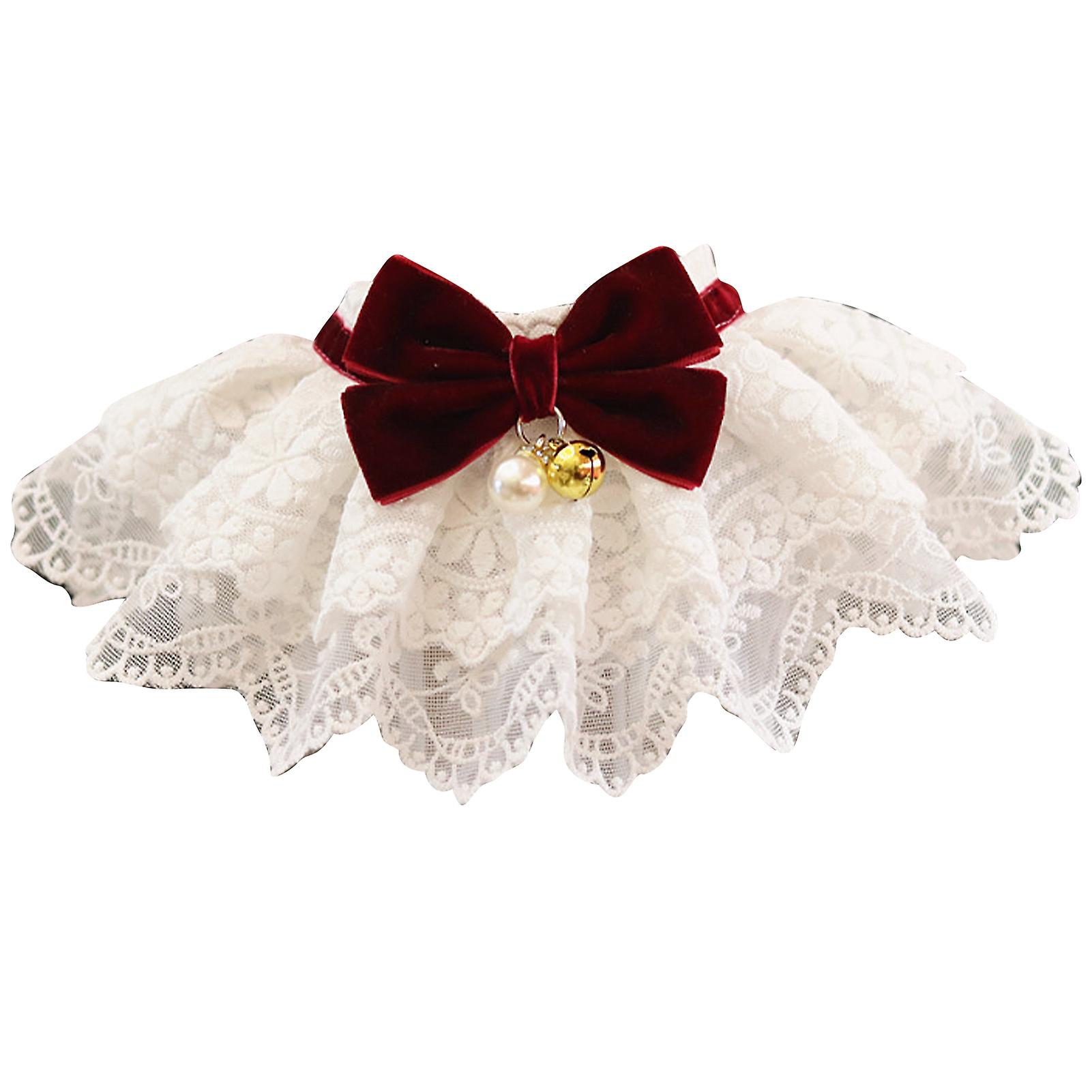 Pet Lace Bibs Collar Cute Bow Soft Easy to Wear Comfortable Bib Scarf for Dog Cat Decoration Wine Red S