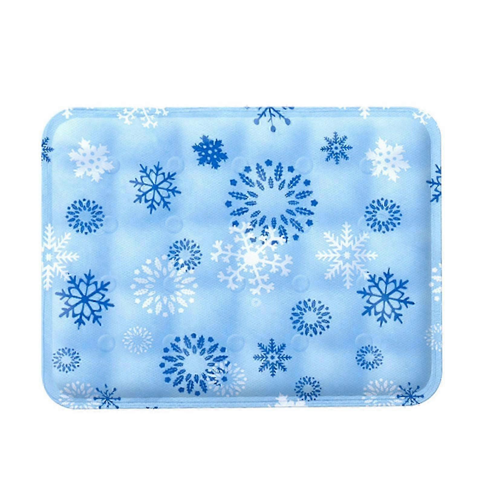 Pet Cooling Mat Waterproof Soft Scratch Resistant Safe Thickened Cat Dog Ice Pad Bed for Summer Blue Snowflake S