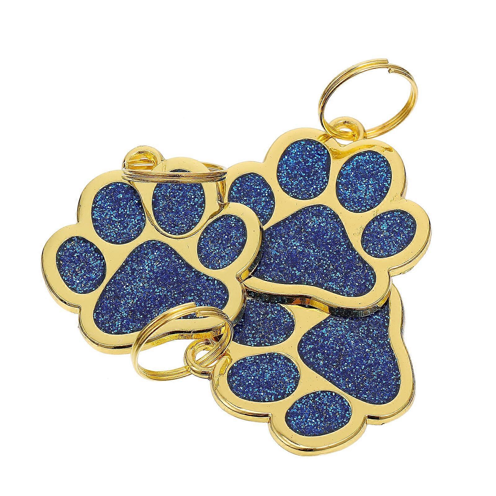 Cute Paw Pet Id Tag Engraved With Pet Information Zinc Alloy Blue 3X3CM Hanging Tag Perfect For Daily Use 3Pcs