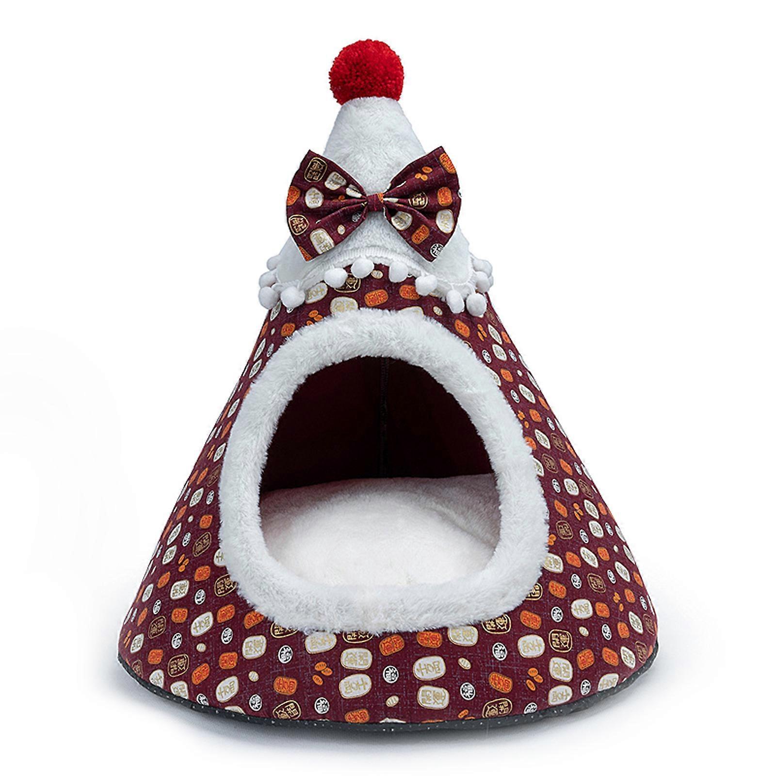Pet Warm Bed House Soft Indoor Semi-closed Cave Tent for Cats Kitten Puppy Small Animals Pet Removable Cushion Pad