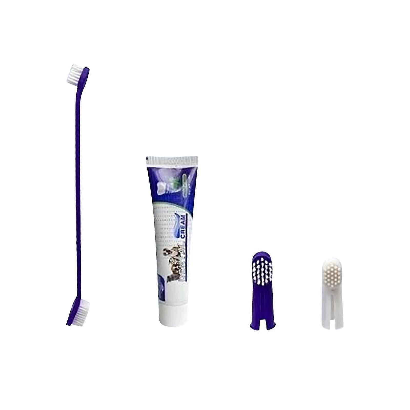 Pet Toothbrush Toothpaste Set Bad Breath Pet Toothbrush Toothpaste Toothpaste For Pet Oral Features: Efficient cleaning of toothpaste, from bad breath. Helps maintain health teeth and a happy for your pet. The Advanced Oral Care Provides Easy Oral Care, Leaving Your Pet With Fresh Breath And Health Teeth And Gums Made from natural ingredients - made from natural ingredients, it can be used as a breath freshener for dogs. Safe - This toothpaste is suitable for all dogs and puppies and is a safe, gentle and effective way to care for dogs' teeth Product Description: 1: Please pacify your dog before use, and let him get used to touching his mouth 2: Toothpaste your finger or toothbrush, give him a lick, and let him get used to the smell 3: Move and brush slowly from the fangs to the incisors, and massage the TA. I gradually like this feeling Package inculded:1x double headed toothbrush+1x blue finger toothbrush+1x white finger toothbrush+1x toothpaste NOTE: Please allow slight measurement deviations due to manual measurement. Due to the different and light effect, the actual color of the item might be slightly different from the color showed in the pictures.