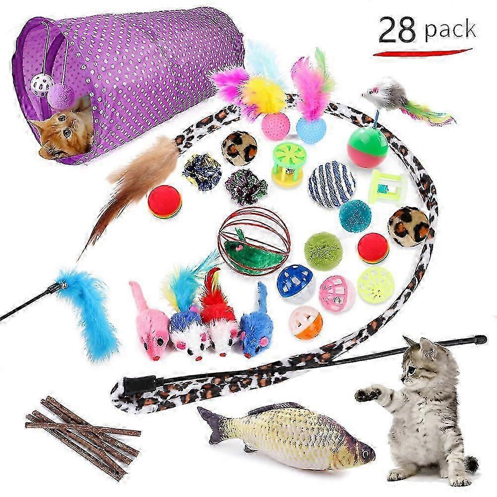 28 Pcs Set Of Pet Cat Toys Feather Mouse Teasing Cat Channel Sisal Ball Teething Toys