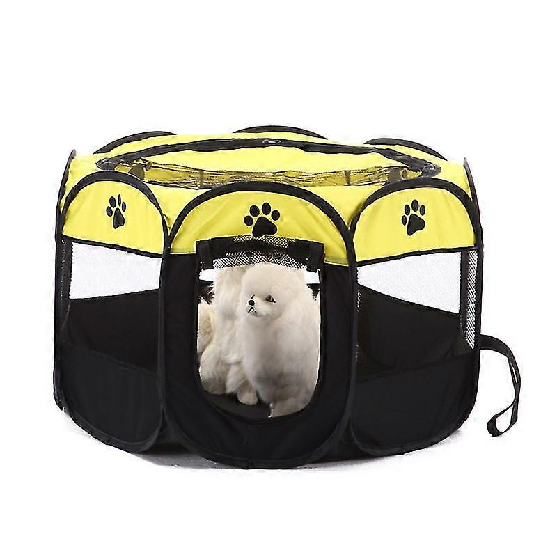 Features: 1.Removable storage, easy to carry. 2.Be safer for yourself and your pet when you drive. 3.Using PVC mesh and Oxford cloth, durable and environmentally friendly. 4.Eight sides ventilation, suitable for homes, offices and cars. 5.Double doors, you can also use it as a pet's home. 6.With zipper and yarn at the top, your pet has more vision and fresh air. Specification: Color:Brown Red Yellow Size: 72x72x45 cm (unfold) Package List: 1x Pet Fence Tent