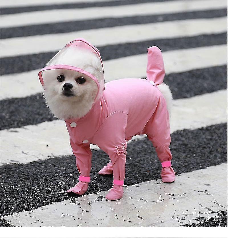 Pet Cat Dog Costume Hooded Raincoat Clothes Rain Boot Jumpsuit Outfit