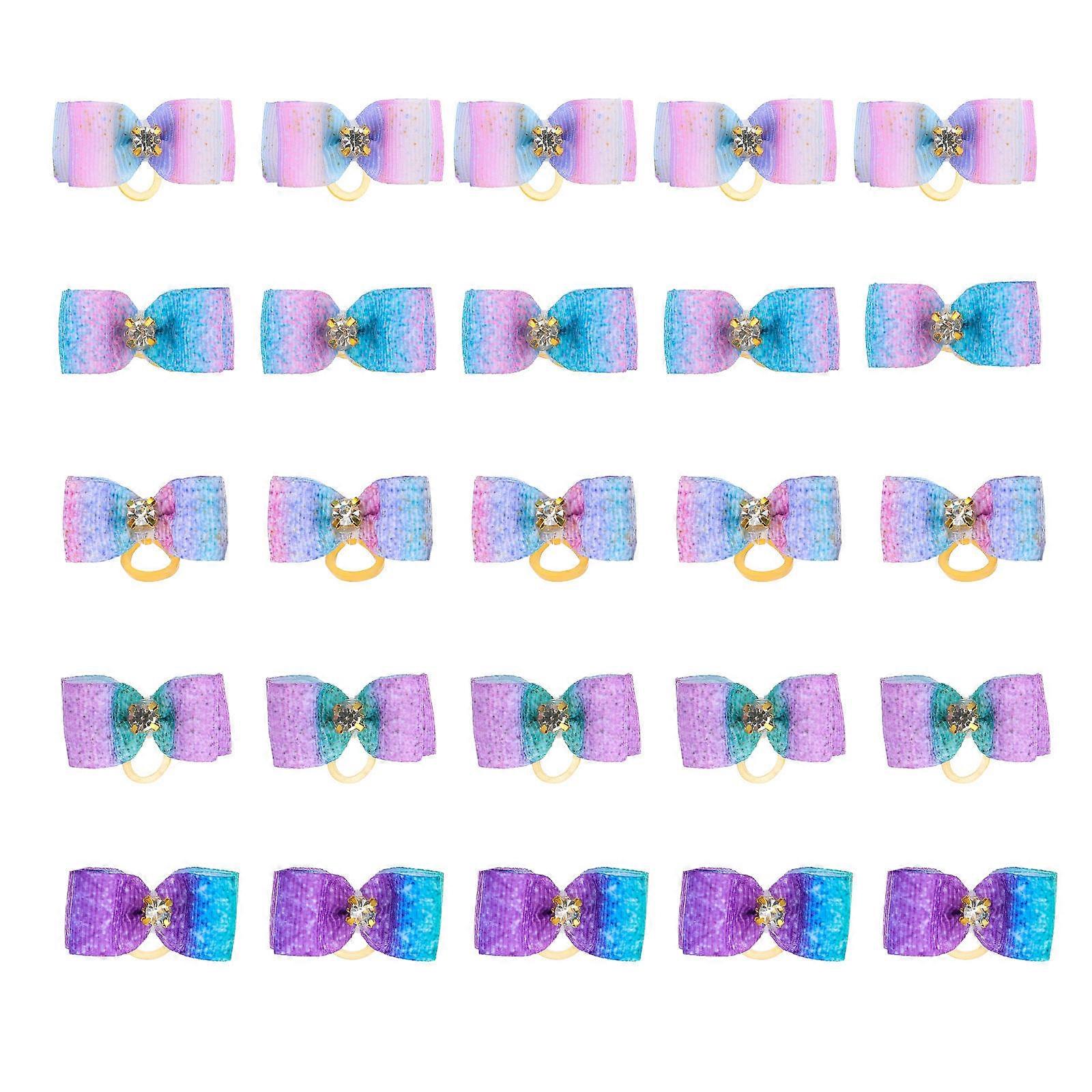 25Pcs Creative Gradient Style Hair Ties For Dogs And Cats With Bowknot Design For Pet