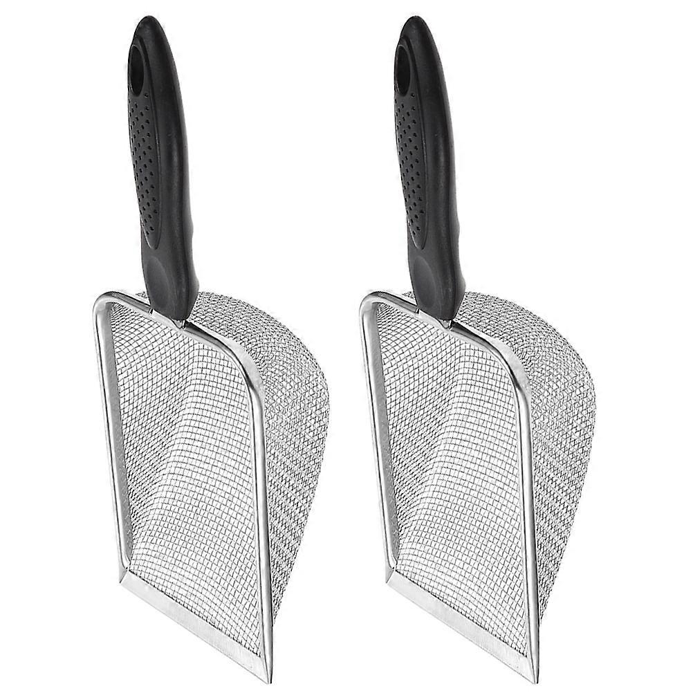 Stainless Steel Reptile Litter Scoop with Ergonomic Grip for Pet Use Silver 2 Pieces