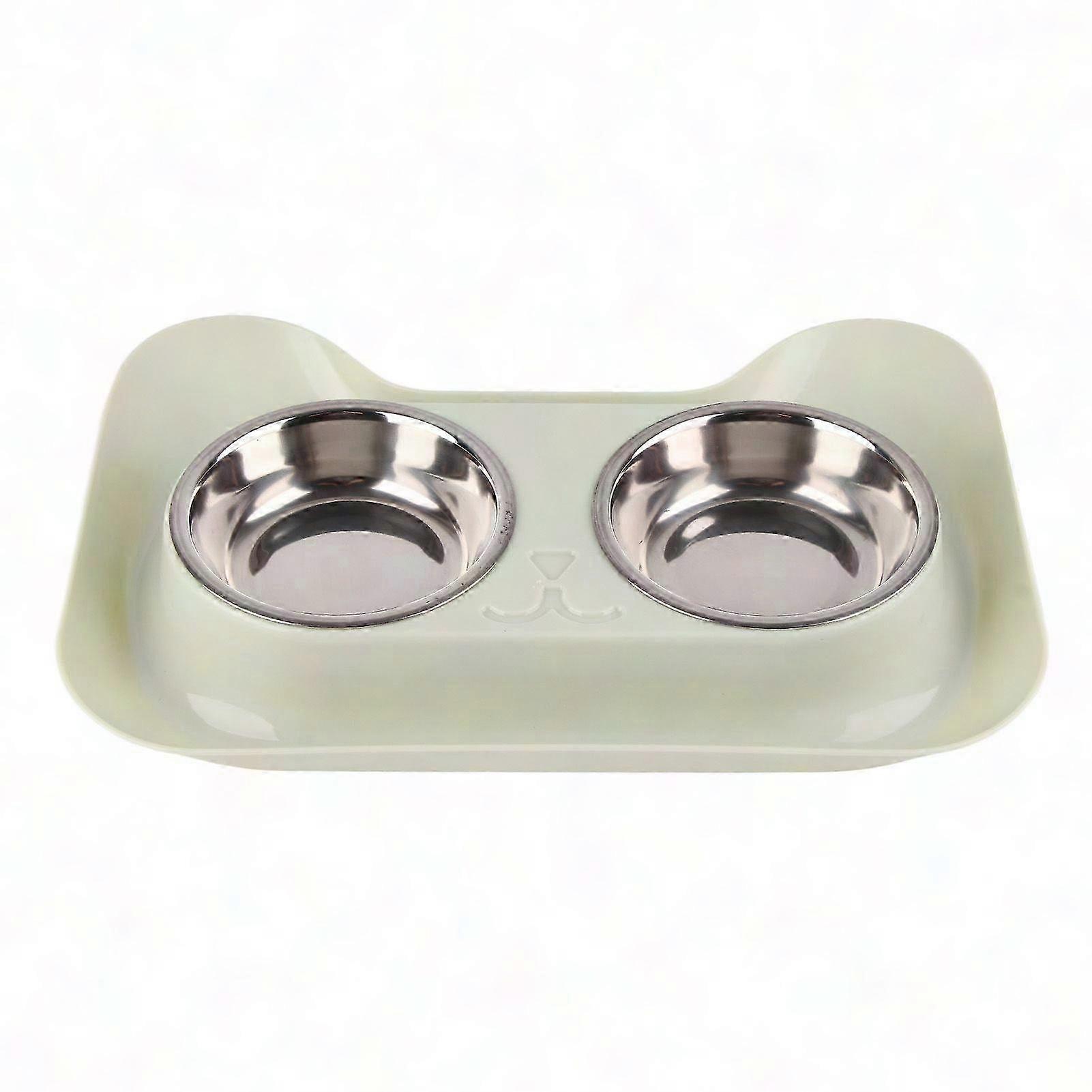 Leak-Proof Double Bowl for Pets - Easy to Clean, Durable Stainless Steel, Cute Design for Dogs & Cats, Green