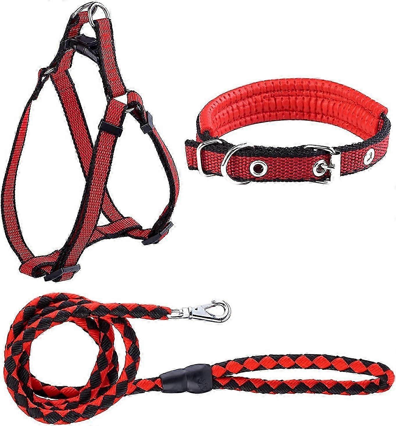 Pet dog harness leash Adjustable nylon braided leash vest (black red, XS) 3 pieces