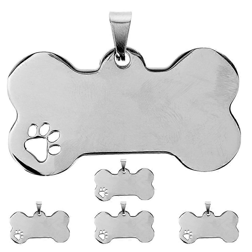 Stainless Steel Dog Tags For Pets Identification 5Pcs Bone Shape Collars Accessories Silver