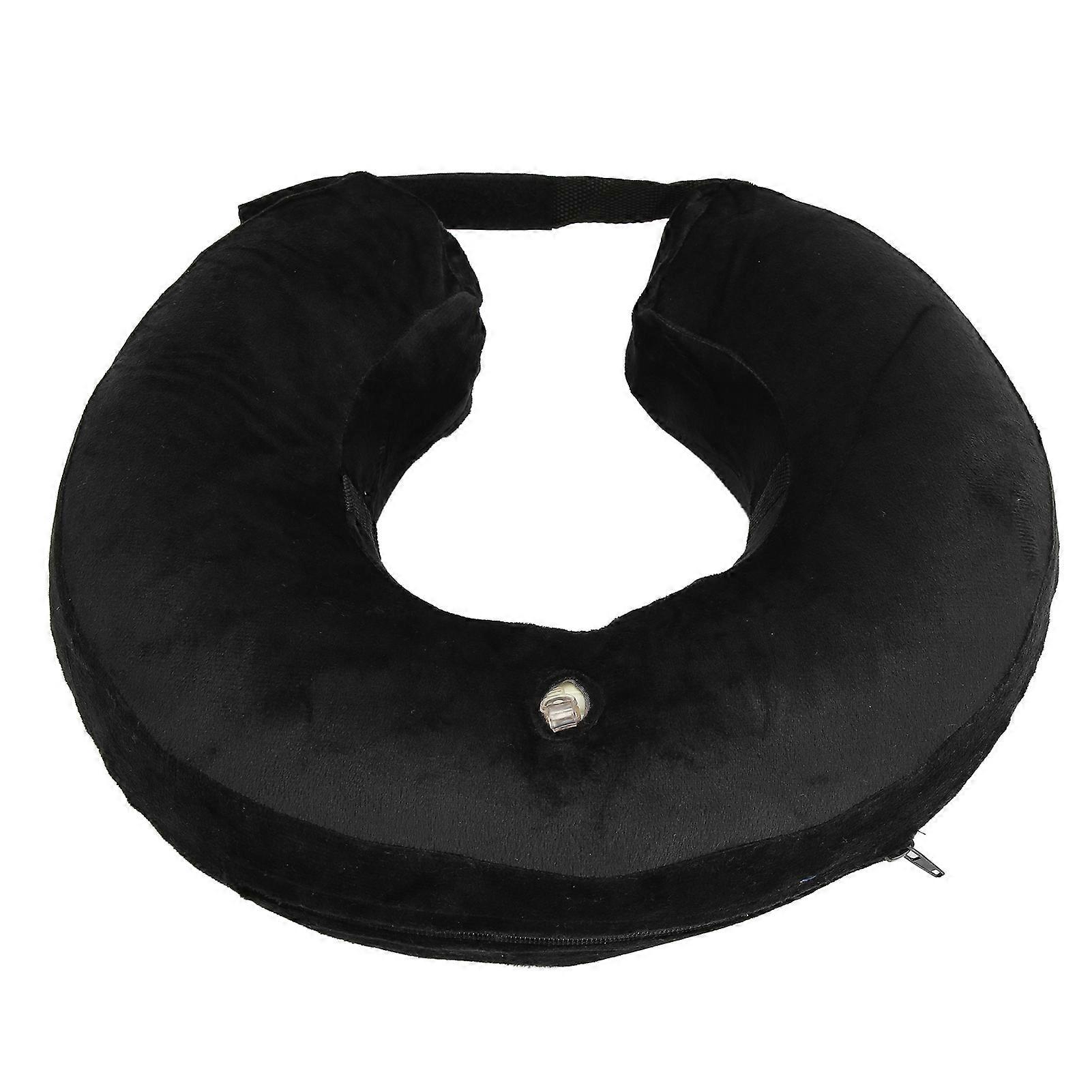 Pet Cone Collar Short Plush Inflatable Recovery Collar L Black White Dots